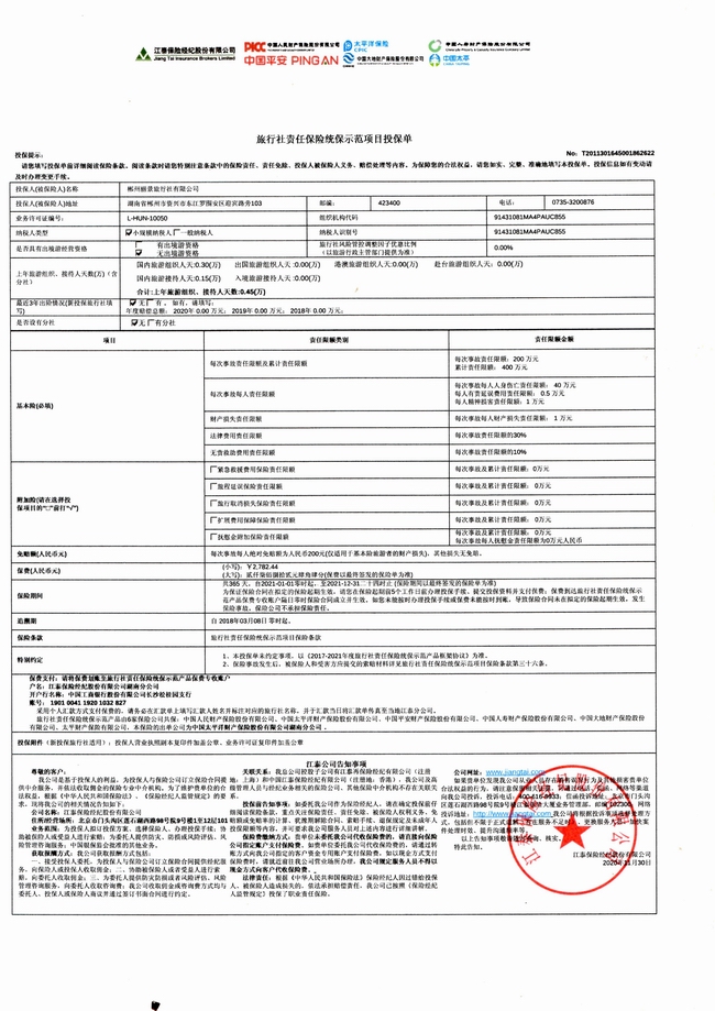 依法繳納旅行社責(zé)任保險(xiǎn)是企業(yè)的義務(wù),也是企業(yè)對(duì)游客安全出行的保障承諾,郴州麗景旅行社有限公司2021年度旅行社責(zé)任保險(xiǎn)已購(gòu)買(mǎi),請(qǐng)廣大游客選擇正規(guī)旅行社,放心出游!