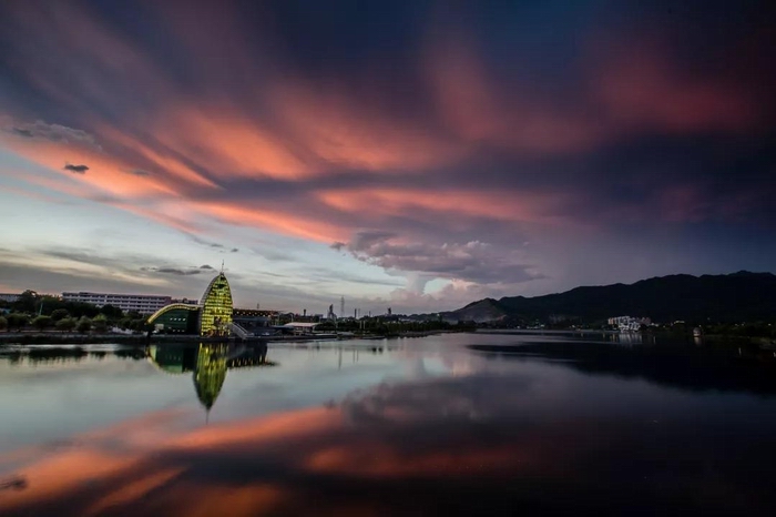 09.因?yàn)榘頃r(shí)分,東江灣的天空彩霞似錦,美得讓人心醉。