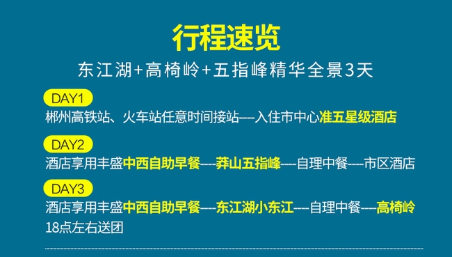 門票:莽山五指峰門票+環(huán)保車+索道上下+東江湖線路一門票+車費