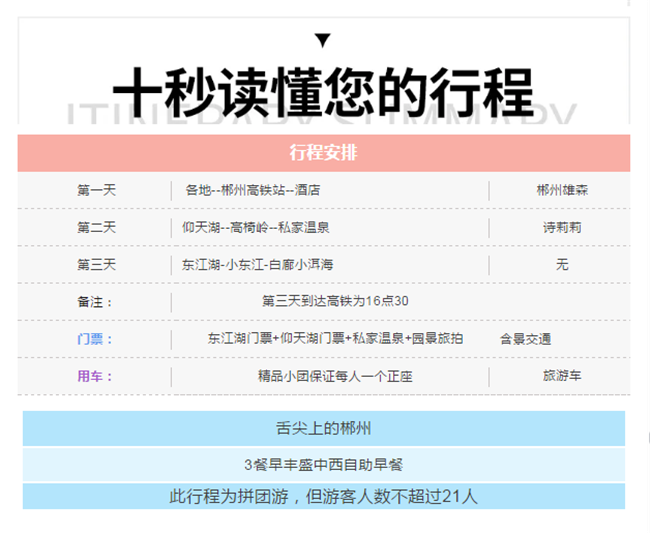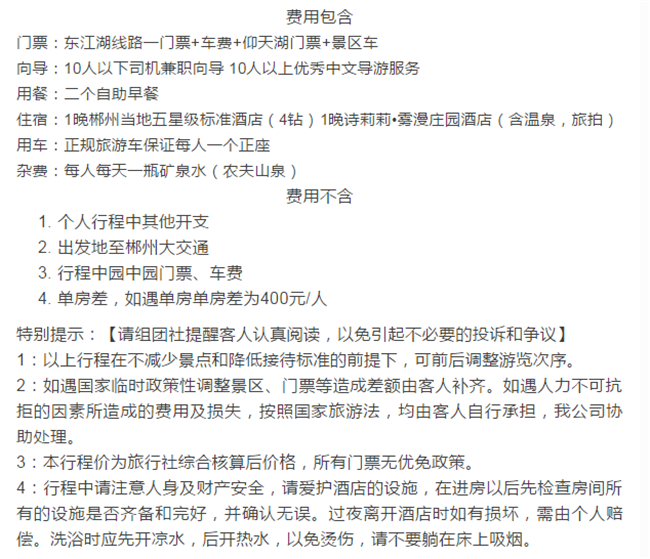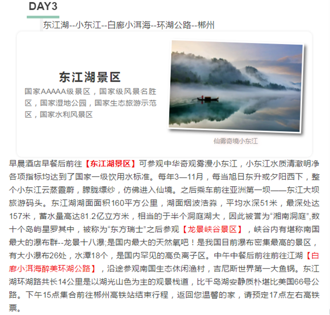 郴州旅游3天2晚飛天山+東江湖+白廊+仰