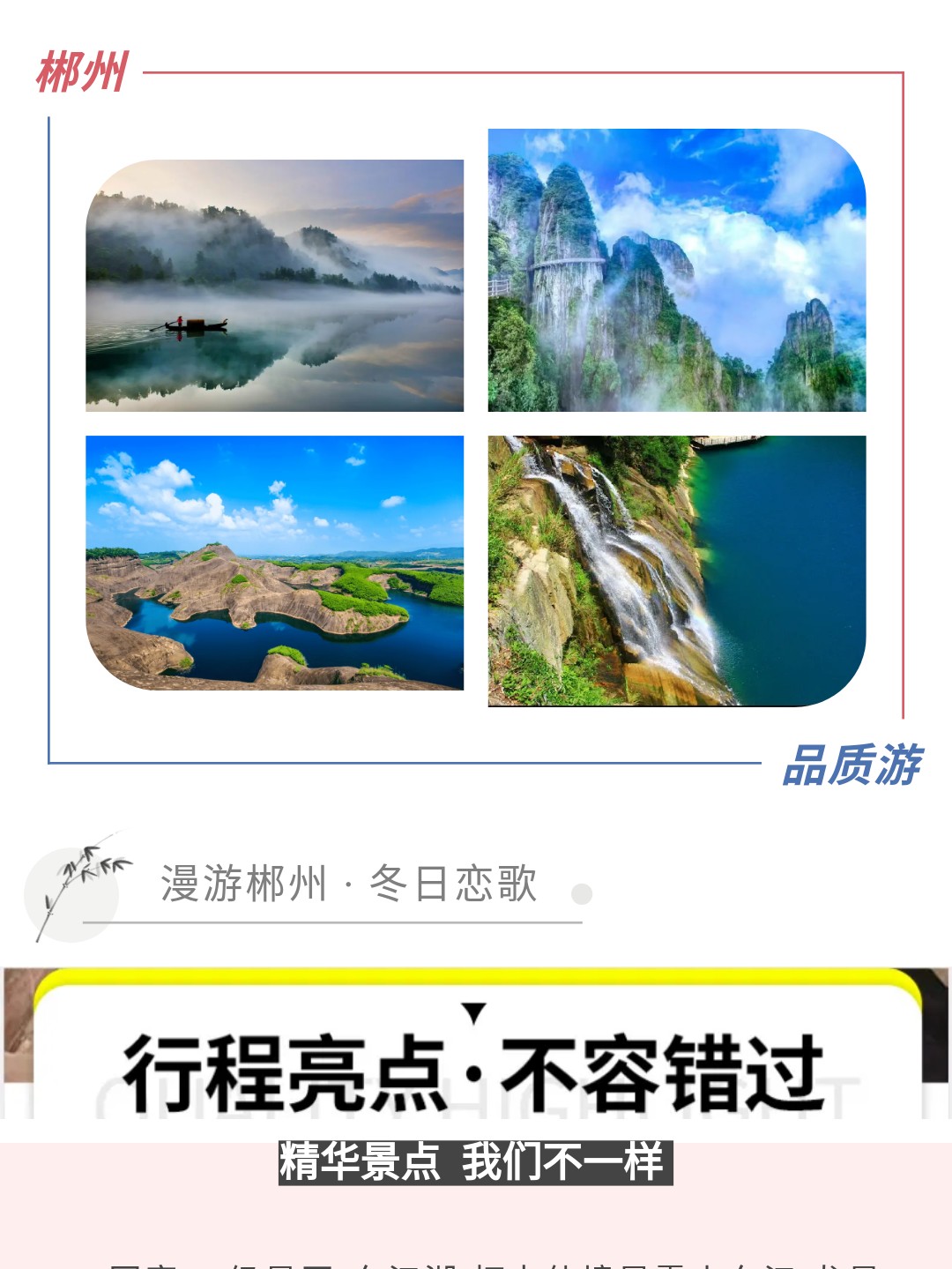 郴州旅游 漫游郴州 冬日戀歌 精華3日游2人起發(fā)郴州高鐵天天接團,入住精品民宿+精品小團+景區(qū)高度自由行+無購物,無自費+管家服務(wù) 聯(lián)系電話18975523233