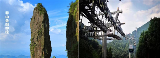 【五指峰索道】,索道全長3.7公里,全國單線最長;每小時客運量達2000人,全國功率最大;全球索道極限高差峰索道,上下穿梭,一索飛渡,騰云駕霧,僅需11分鐘,就到五指峰核心景區(qū),懸崖棧道,莽山新十景,一一亮相在你眼前。景區(qū)內(nèi)的崖子石(又名天臺山),山勢雄偉,氣勢磅礴,崖險谷幽,奇峰怪石遍布。雨后放晴時節(jié),這時云霧繚繞,晃若人間仙境。這里富含著悠久的文化,不腐女尸之謎更令人神秘莫測。該景區(qū)主要有,達1000米,創(chuàng)造了全國乃至全球索道領(lǐng)域的多項,堪稱“世界一流、中國”五指仙掌峰、童子峰、金鞭神柱、偉人會觀音、東天門、天南險、小華山、仙韭菜坡 杜鵑林、觀音堂、天臺寺、千年紅豆杉等景點。
