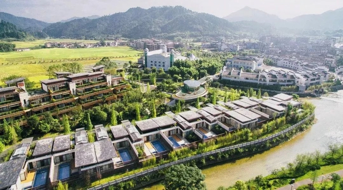 福泉旅游度假區(qū)位于中國(guó)首批特色小鎮(zhèn)——熱水鎮(zhèn),地處湘、粵、贛三省交界處,環(huán)境優(yōu)美,綠化覆蓋率達(dá)90%,空氣負(fù)氧離子濃度高。溫泉出水溫度一般為91.5℃,含硅、鈉、鉀、鈣、鋰、鍶等30多種對(duì)人體有益的元素,特別是氡的含量達(dá)到礦泉醫(yī)療標(biāo)準(zhǔn),是我國(guó)少有的“氡泉”,享有華南養(yǎng)生泉的美稱。