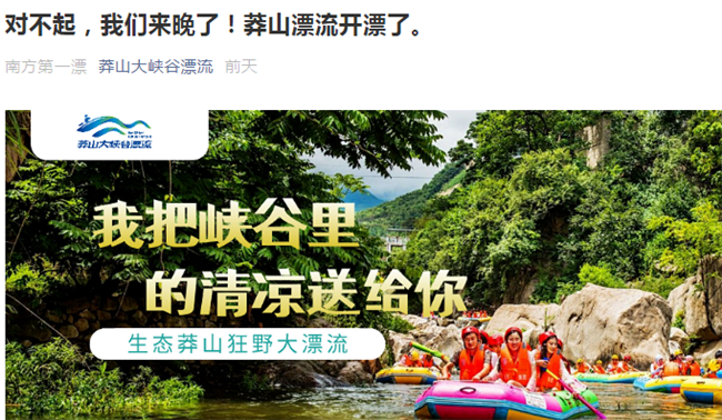 對不起,我們來晚了!莽山漂流開票了。
