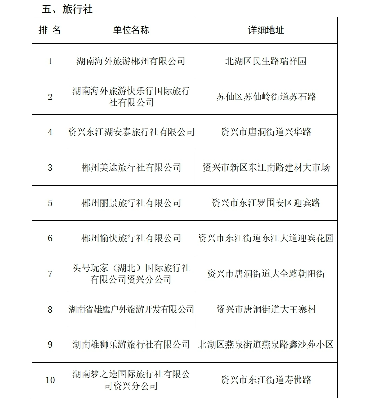 附件:郴州市涉旅行業(yè)2023年第二期創(chuàng)“三零”提“三率”評(píng)比活動(dòng)排名前10的涉旅企業(yè)名單